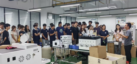活动期间,嘉仪通科技研发经理林冲陪同师生团队参观了企业研发实验室与生产车间,详细介绍了快速退火炉、霍尔效应测试仪、冷热台等一系列关键设备的功能与应用。学生们得以近距离观察物性分析仪器,切身感受完整产业链运作。
