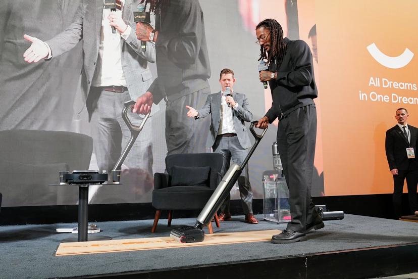 1月7日,追觅洗地机展区迎来了一位特殊的体验官 —— NBA 传奇球星、历史最年轻 MVP 德里克·罗斯(Derrick Rose)。罗斯在现场亲自体验了多款追觅洗地机产品,对双机械臂刮洗结构及蒸汽 + 热水清洁方案留下了深刻印象。球星的到访也迅速吸引大量观众与媒体围观,成为 CES 现场的一大亮点。