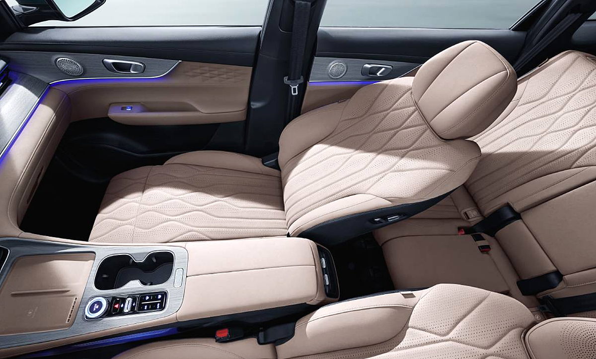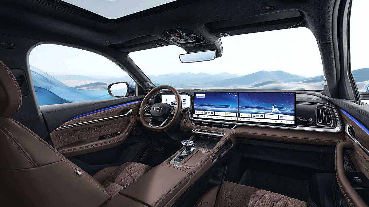内饰是星越L东方曜的亮点所在,最引人注目的是中控台上的双14.6英寸大屏,加上12.3英寸液晶仪表和25.6英寸AR-HUD抬头显示系统,构成多屏交互体验。内饰材质也经过升级,采用木纹饰板、环保麂皮等优质材料,营造出轻奢氛围,档次感也有明显提升。