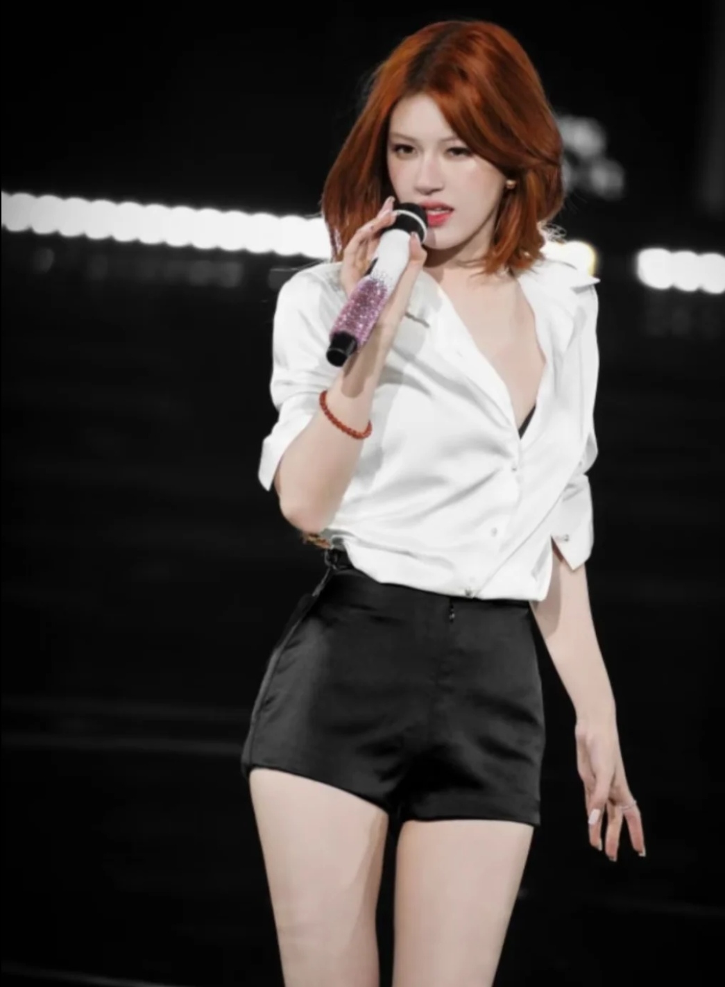 白色T桖+黑色超短裤,赵露思的比例也太好了