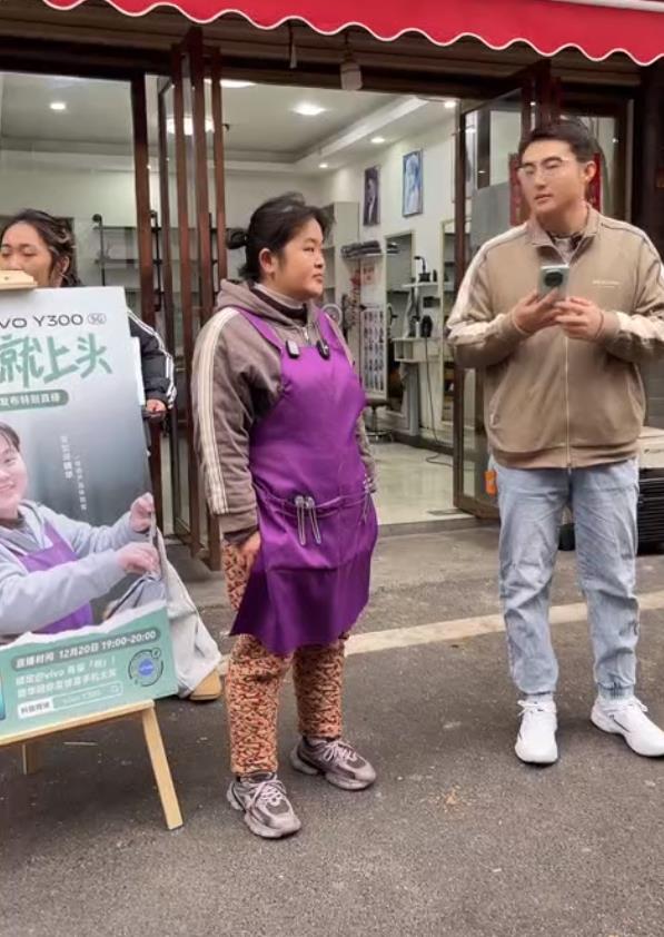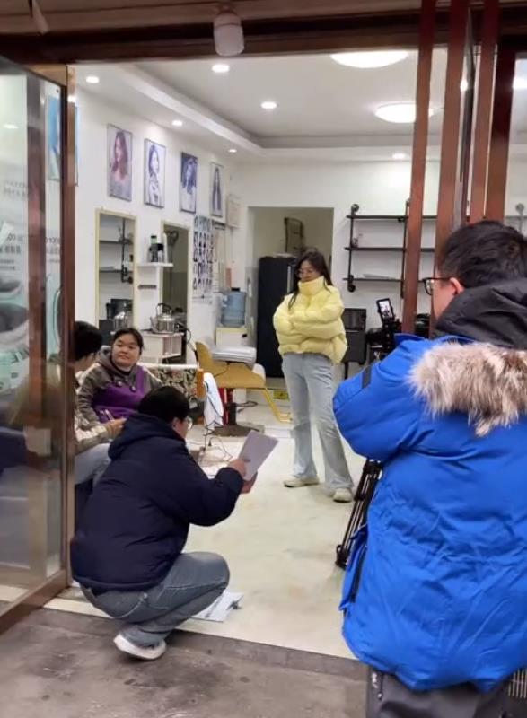 为了晚上的直播带货,官方还去他店里拍视频,工作人员也体验了一下晓华剪发的技术。