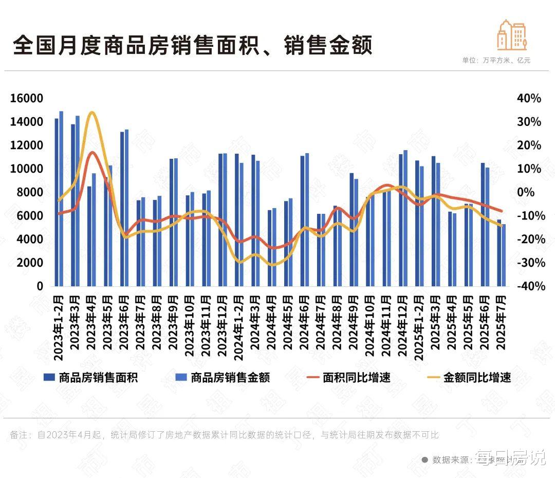 你知道现在楼市降到什么程度吗?一来市场销售恶化,据国家统计局数据推算,7月全国新建商品房销售面积、销售额,环比分别回落46%和48%。