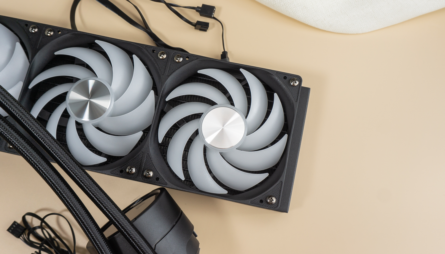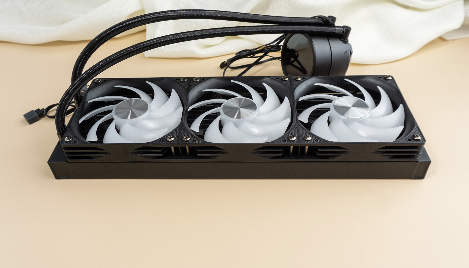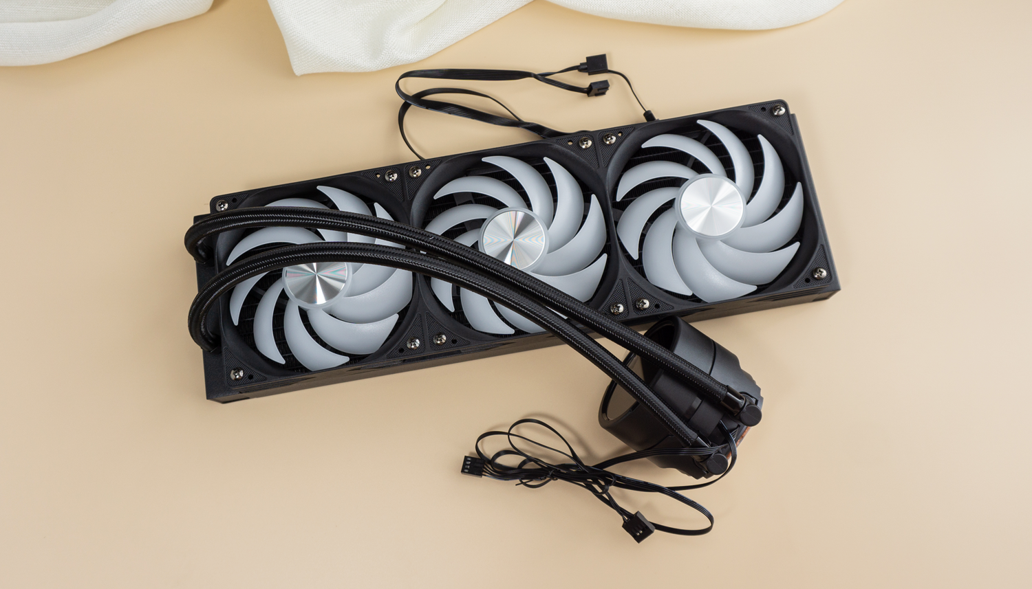 银昕E360 PRO的风扇已预先安装在冷排上,采用三联一体式设计并搭配单线材连接,不仅避免了小白等手残党的安装错误,又优化了开放式机箱的走线美观度。