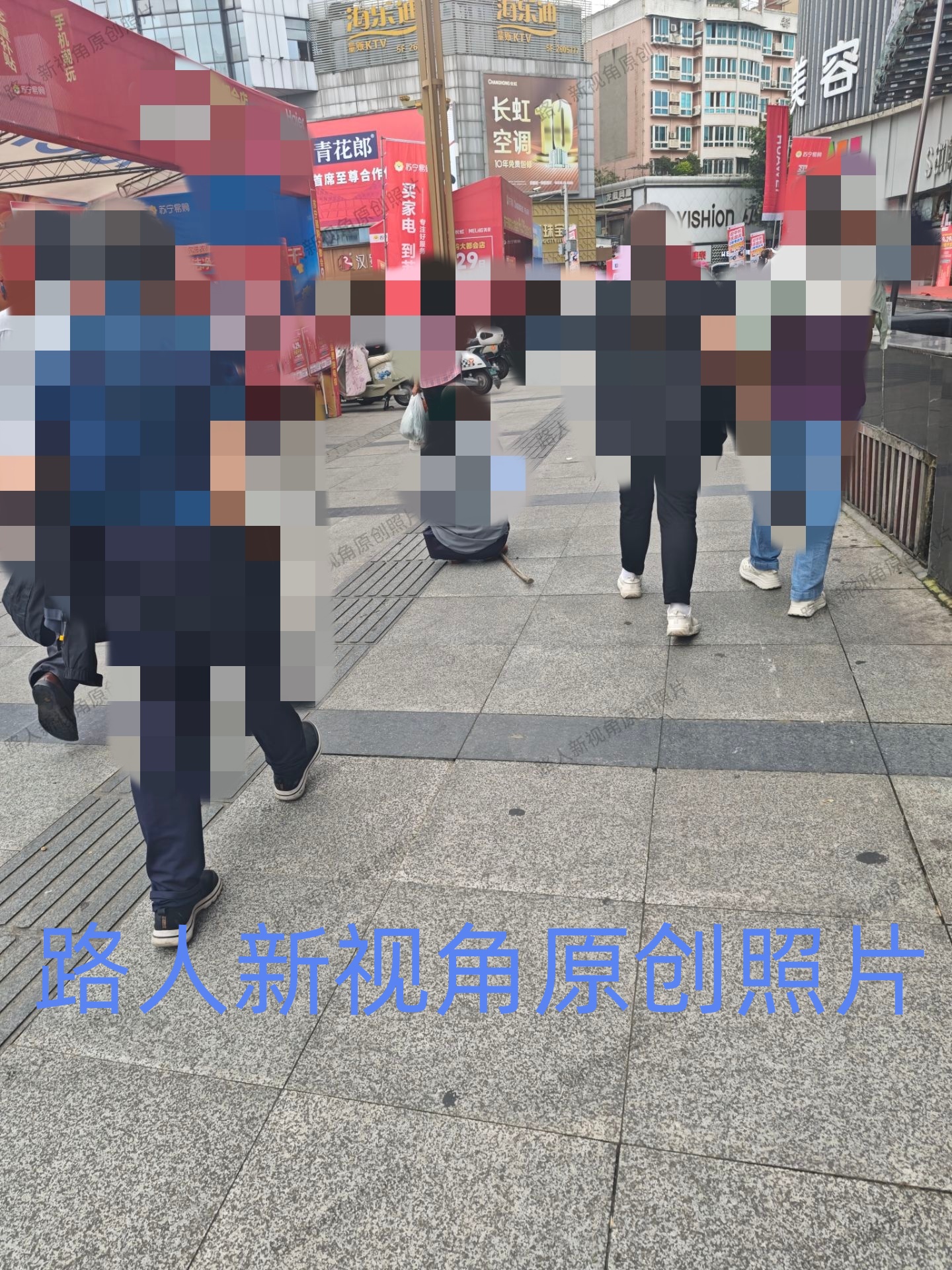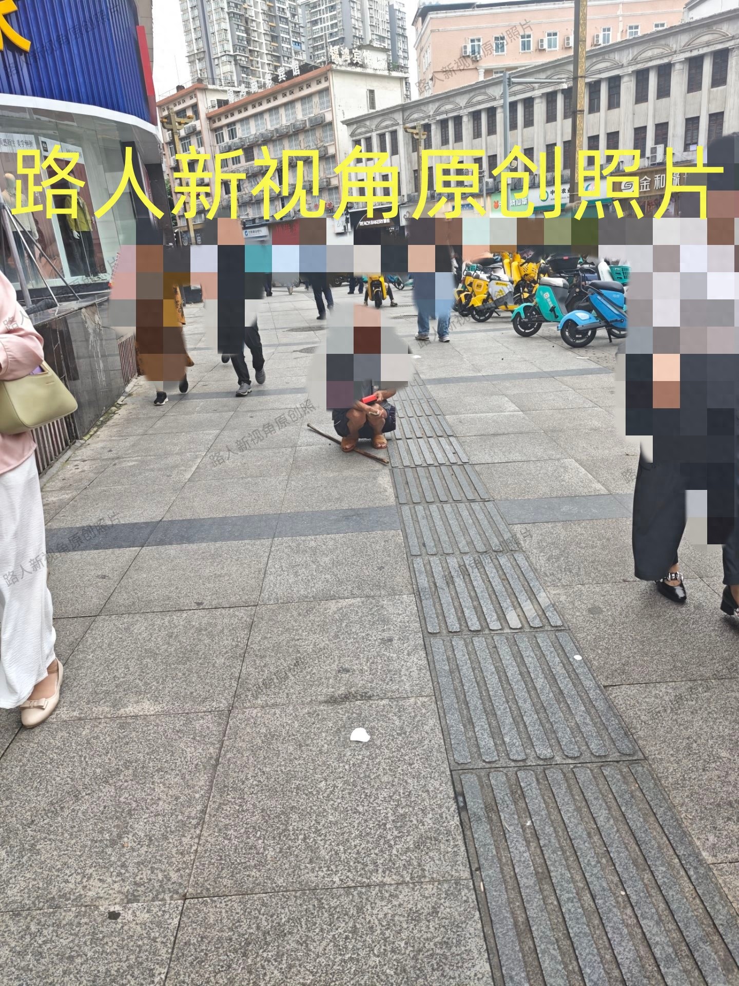 南充市中心的五星花园繁华地段上,疑似残障人士蹲地乞讨,看起来好可怜