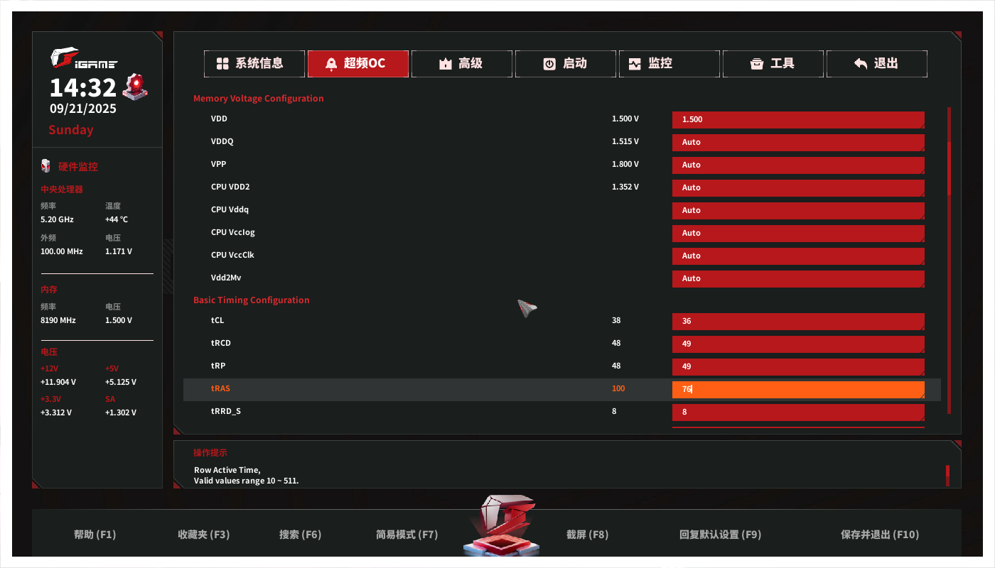 作为采用海力士特挑A-Die颗粒的玖合异刃DDR5 8000 RGB灯条,其8000MHz的标称频率显然不是终点。在确保安全性的前提下,我进行了细致的超频探索:保持1.5V工作电压不变,将时序参数优化为38-48-48-100,频率提升至8200MHz并实现开机。这个看似保守的200MHz增幅背后,是海力士特挑颗粒优秀的电气特性与精准的电压控制共同作用的结果。