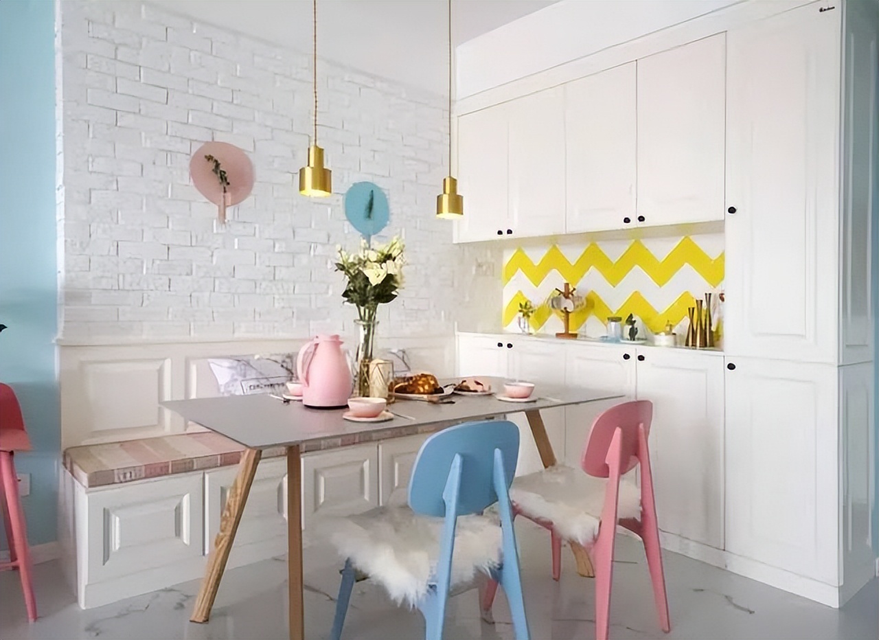 觉得卡座死板、不方便挪动?可直接靠墙摆传统餐桌椅,灵活性更高,日后想换风格也方便;
