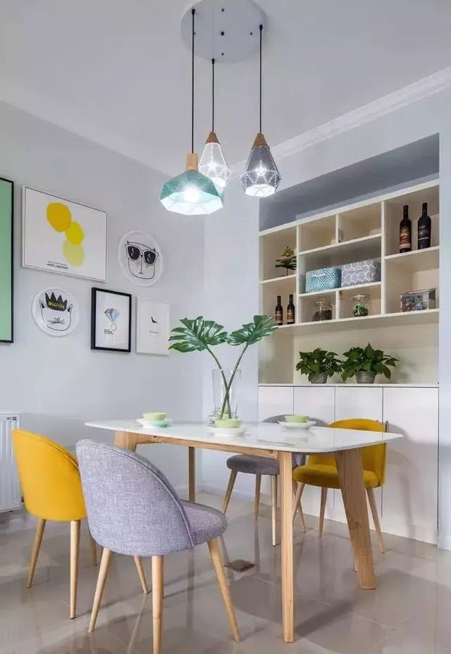加两盏几何吊灯点缀,小小的用餐区瞬间有了品味与格调,告别单调。