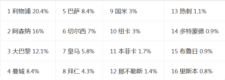 阿森纳:从未获得过欧冠冠军,唯一一次闯入决赛还是在2005-06赛季,枪迷们对大耳朵杯的渴望可想而知。在阿尔特塔执教的关键赛季,阿森纳的目标是斩获队史首座欧冠奖杯。球队上赛季欧冠表现亮眼,以小组赛第三的身份晋级,并最终闯入半决赛,本赛季有望更进一步。