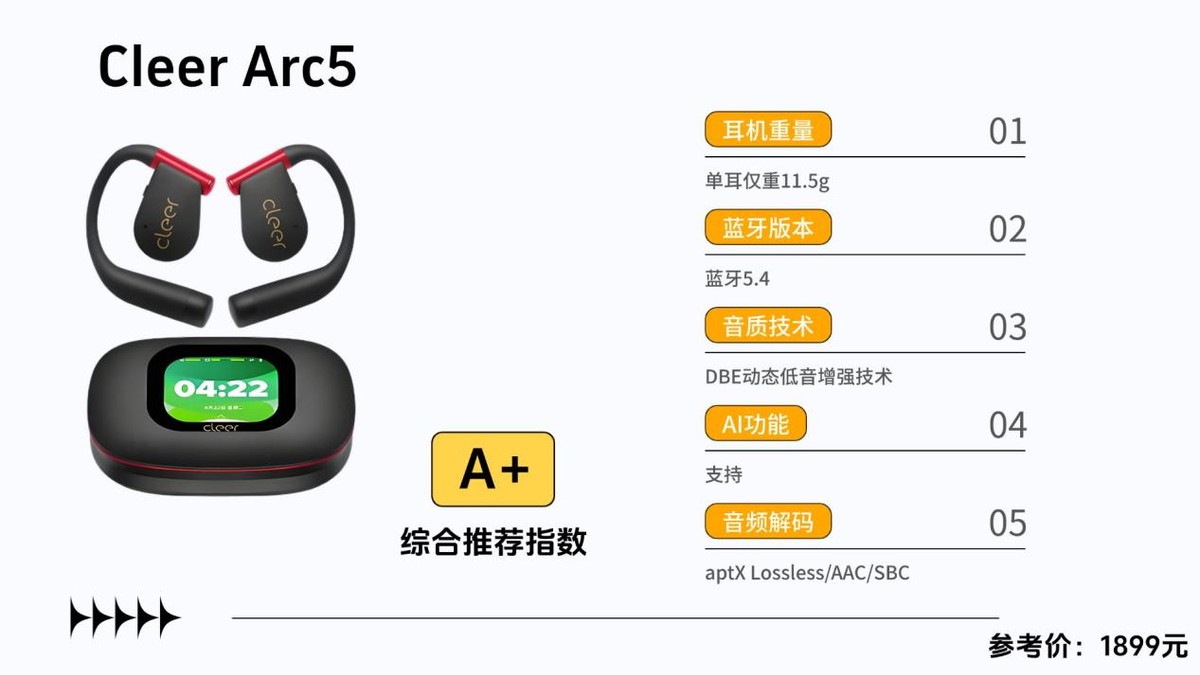 开放式耳机推荐三:Cleer ARC 5参考价格:1899元综合性能评分:90分推荐理由: