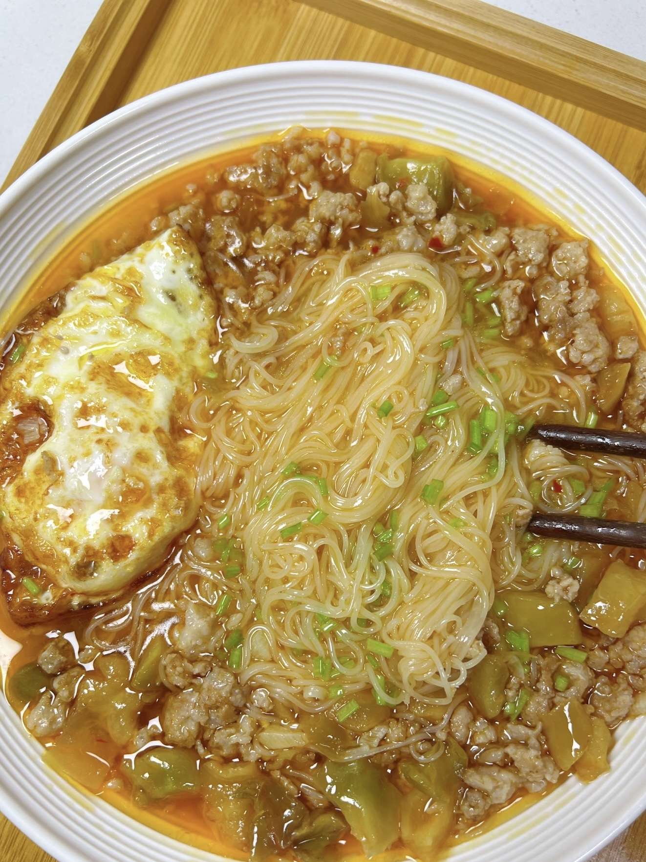 先给主角们定妆:挂面一小把、肉末二两、榨菜半袋、鸡蛋一枚,再抓蒜末、香菜末当气氛组。肉末别用太瘦,三七肥瘦最带劲;榨菜选脆爽微辣款,咸度够就不用额外加盐。鸡蛋想偷懒直接打汤里也行,但煎成溏心蛋更犯规,金蛋黄流进汤里,瞬间升级“黄金高汤”。