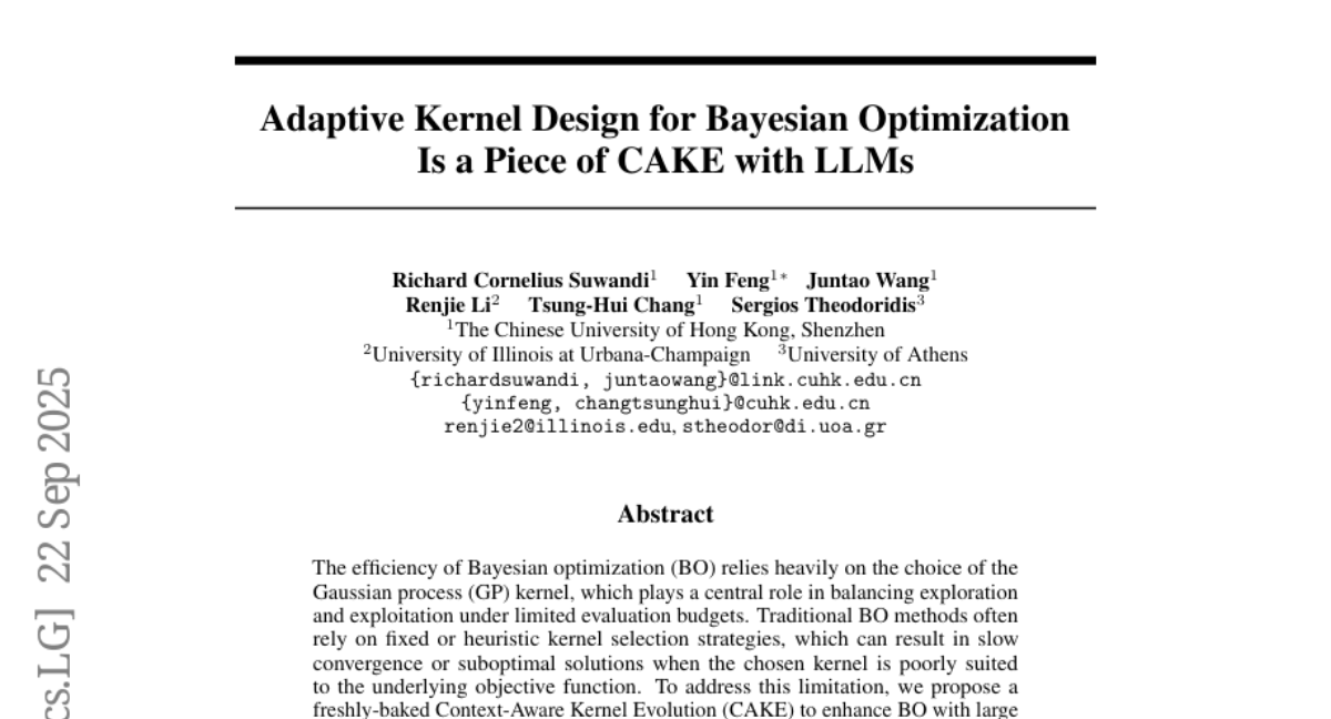 想象一下,你正在尝试找到制作完美蛋糕的最佳配方。传统的做法是使用固定的配方模板,但这种"一刀切"的方法往往无法适应不同类型的蛋糕。而这个研究团队提出的CAKE方法(Context-Aware Kernel Evolution,情境感知核函数演化),就像是雇佣了一位经验丰富的智能厨师,能够根据每次烘焙的具体情况,动态调整配方中各种原料的搭配比例。