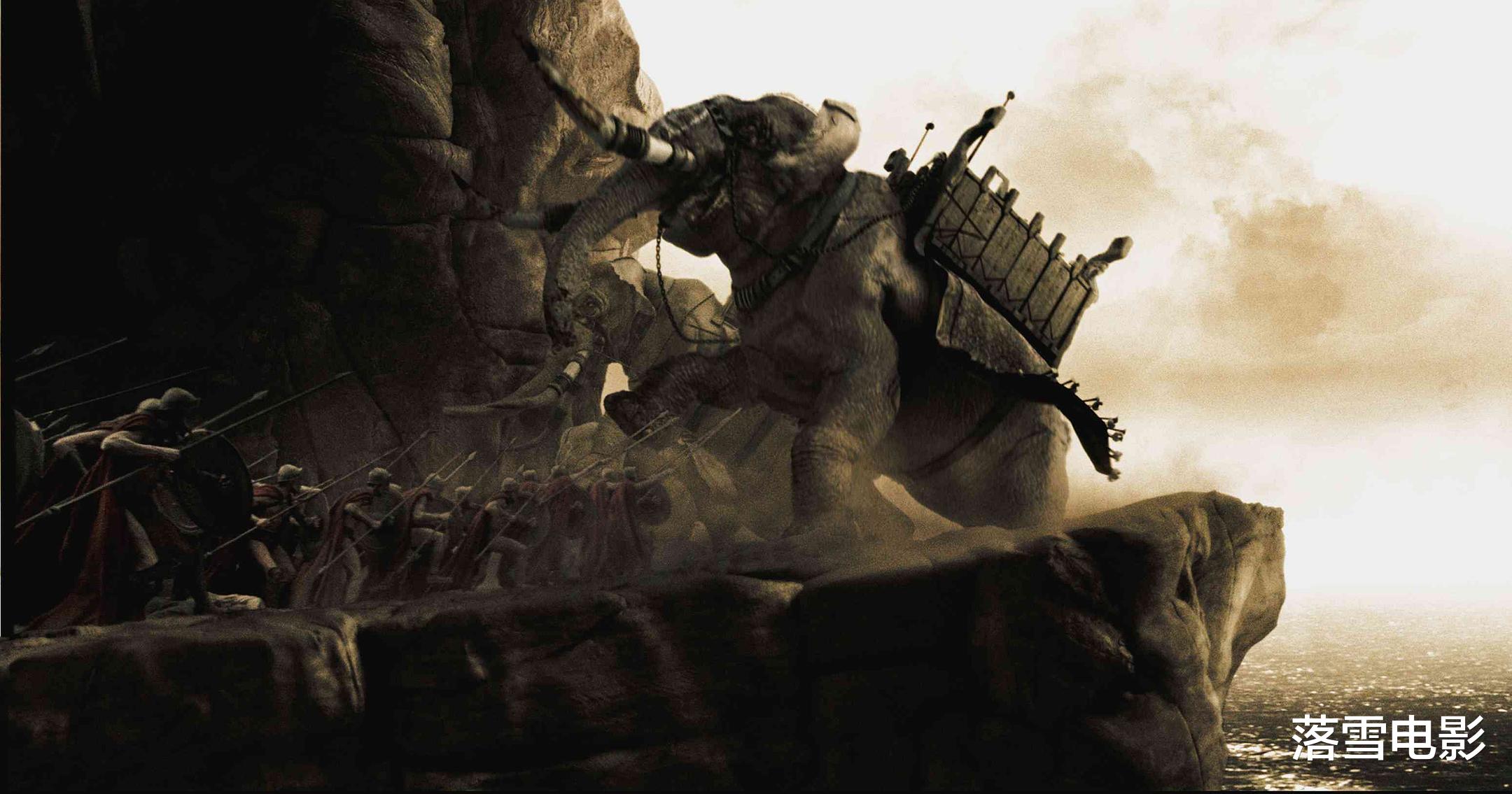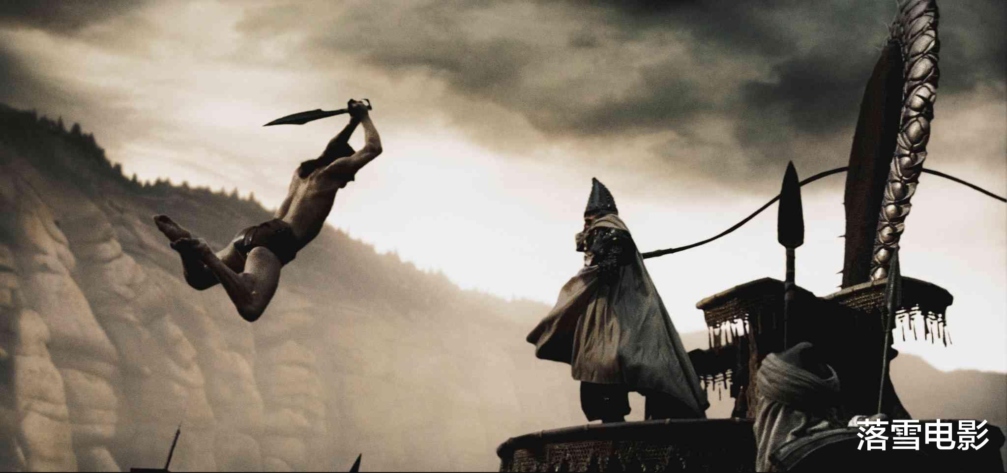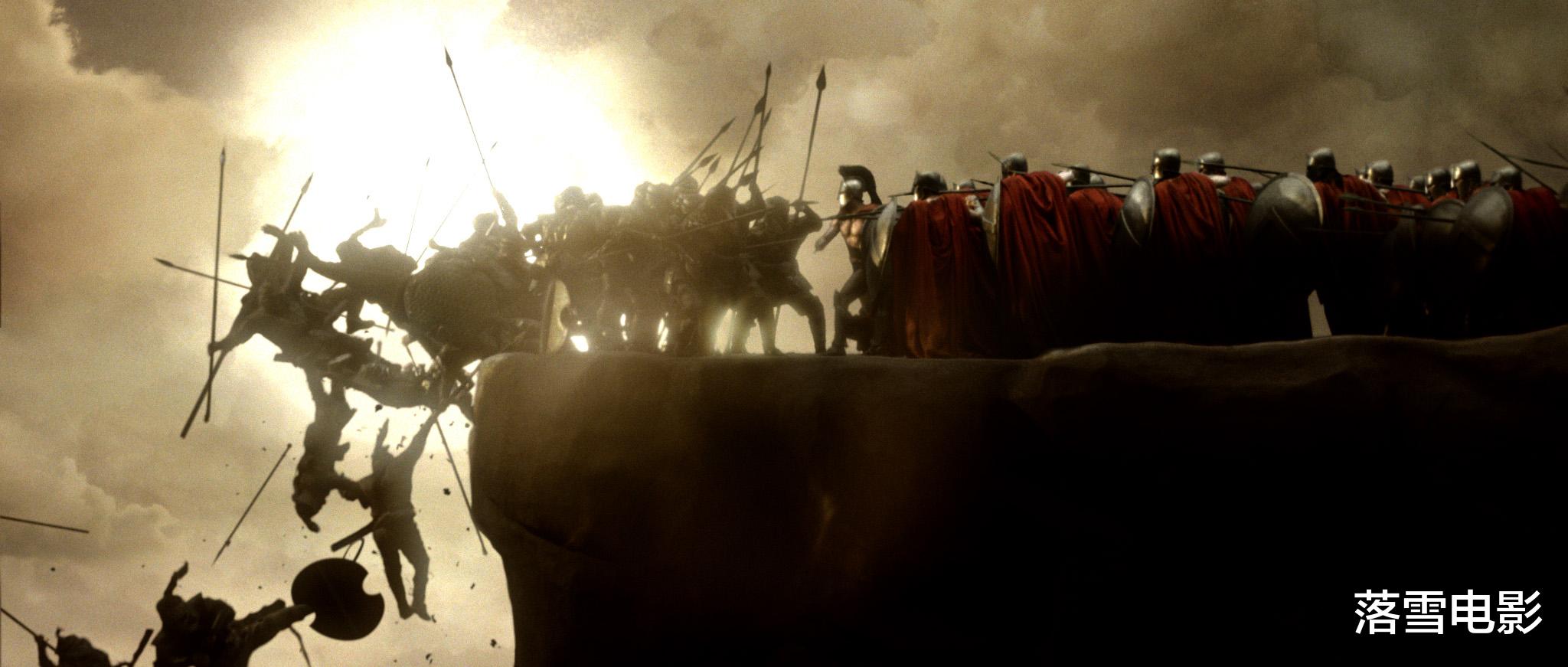 同时,比如暴雨里的斯巴达勇士、海洋里波斯军舰的覆没、被推下悬崖的波斯军队、与《英雄》一样的箭雨(严重怀疑这里和结局是受了《英雄》的影响,当年看的时候就觉得和《英雄》非常像,或者《英雄》是受到了原版漫画影响),薛西斯禁卫军、巨兽兵团等在呈现上,随便一截图都是满满的油画感。