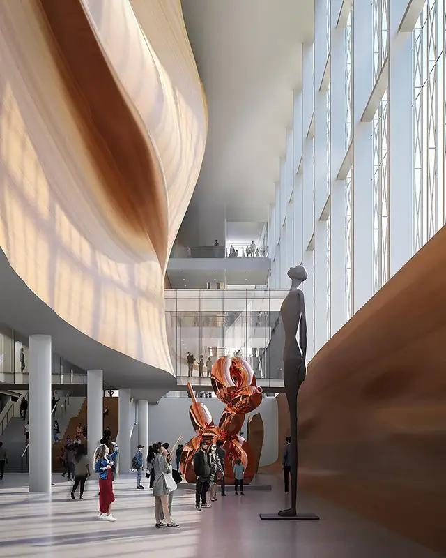 博物馆将流线组织成连续序列,串联起城市街道、滨海步道与港口区域。路径贯穿建筑,促进日常通行与文化活动的共存,使博物馆成为滨水网络中的活跃节点。