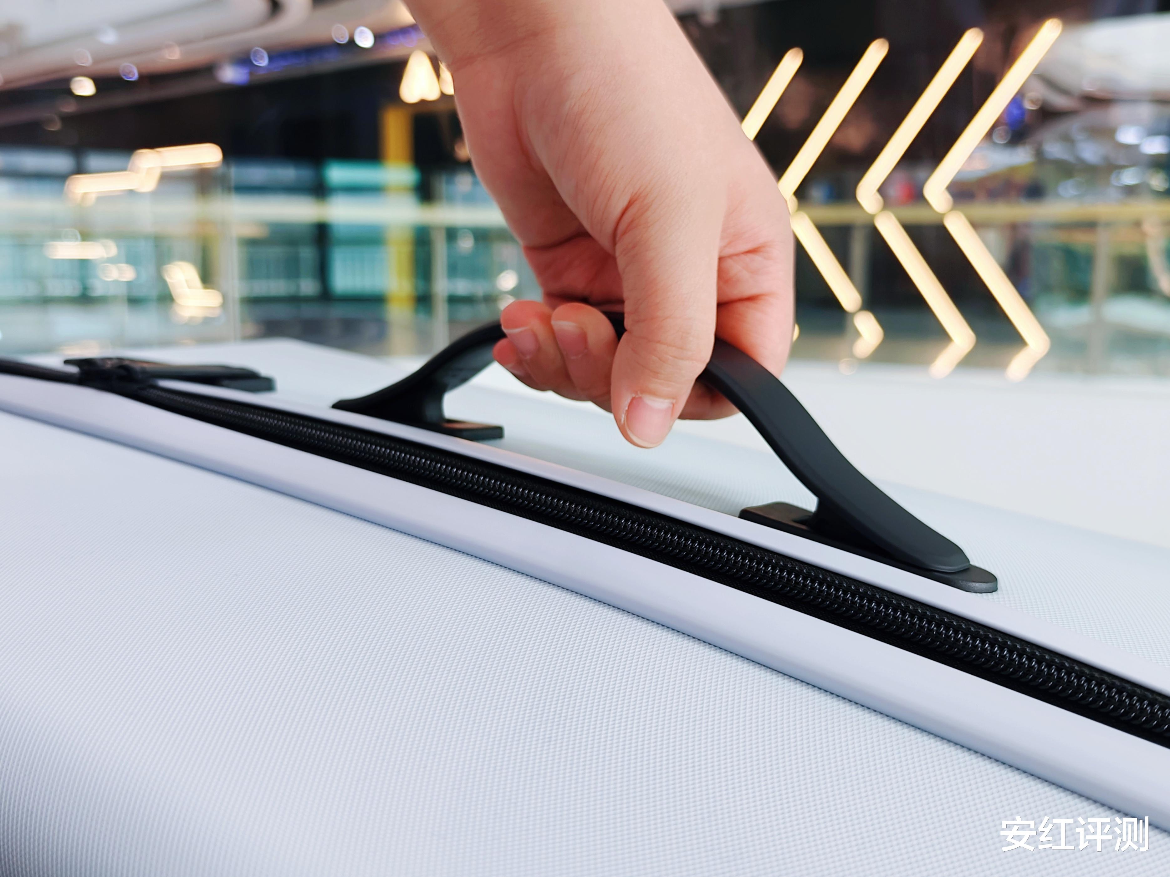 选择旅行箱我非常注重滚轮的质量。我经历过在高铁站滚轮掉落的狼狈瞬间,刺耳的拖拽声让我至今难忘。地平线8号Trunk系列旅行箱采用了360°轻音万向轮,搭载钢制双轴承,负重满载的情况下经受得起长久拖行,磨损小于2mm,而且箱体越重滚轮就越丝滑。这次出行,我深切感受到高品质好物带给我的气场和自信。