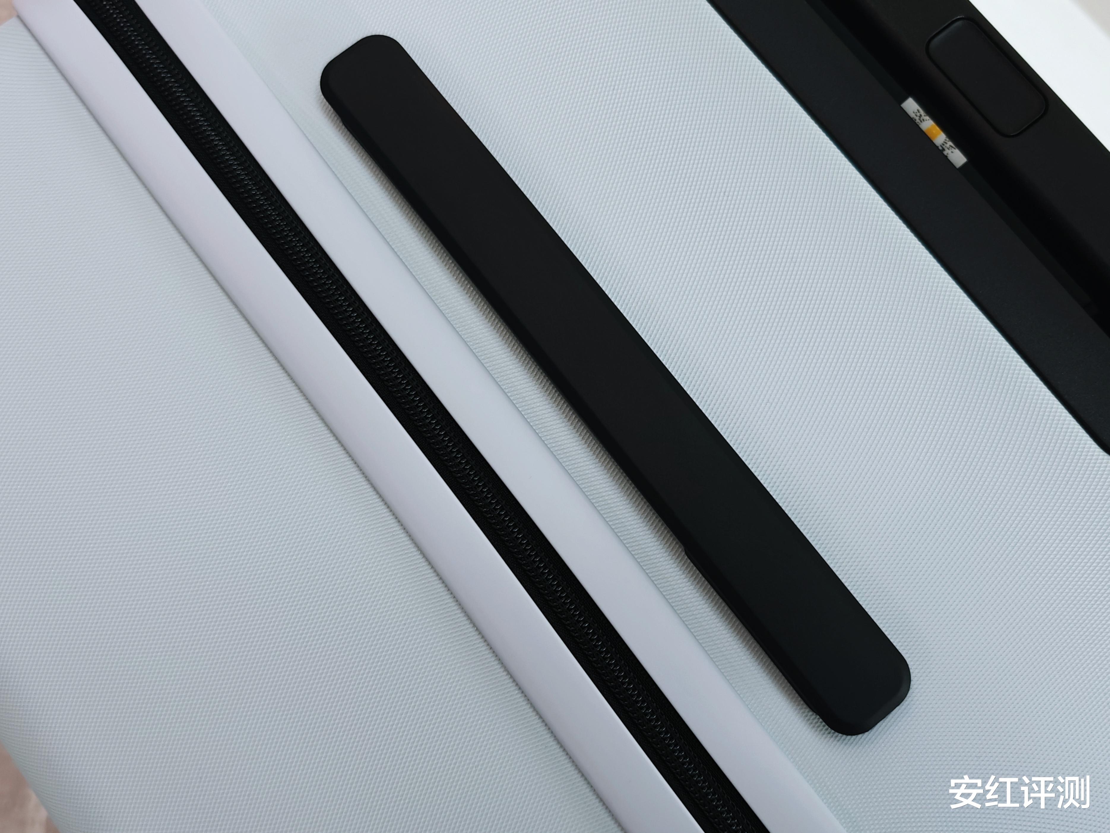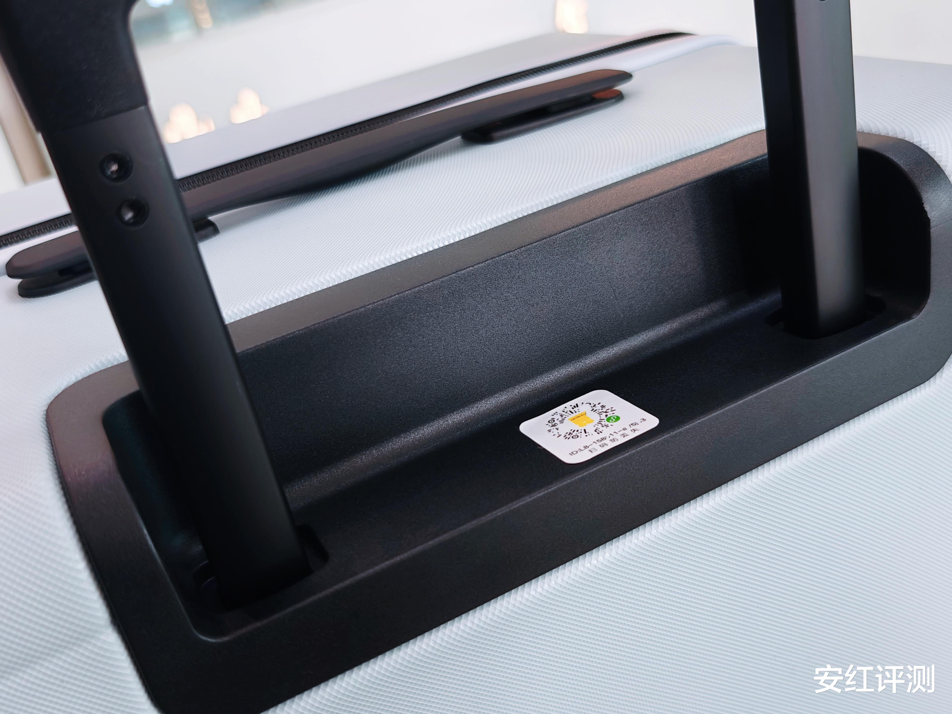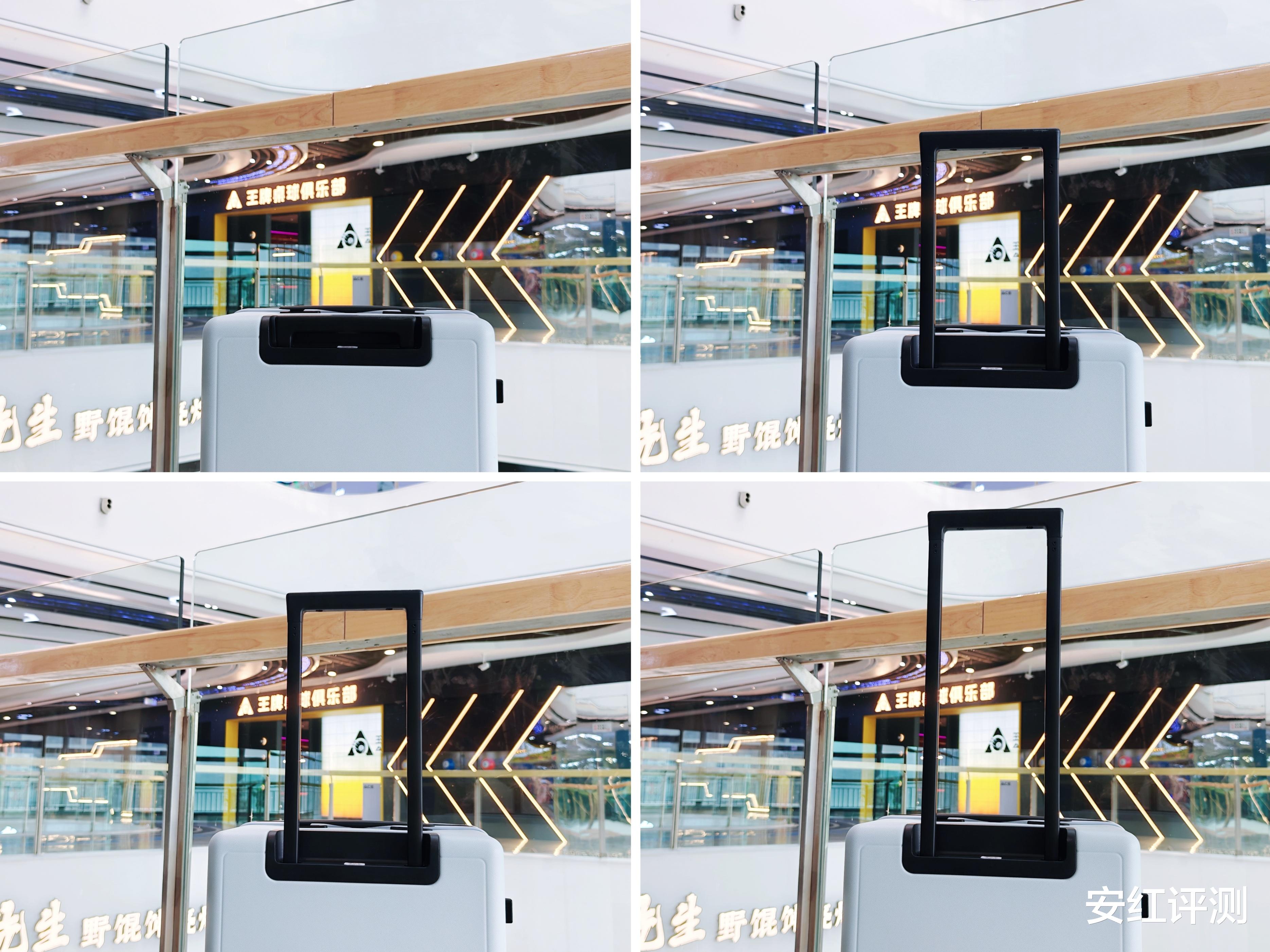 地平线8号Trunk系列旅行箱针对不同身高人群,将铝合金拉杆分为四档调节高度,每一分推力都传向滚轮。在拉伸的过程中拉杆平滑、不卡顿,拉到最后一档,只有轻微的摇晃幅度。