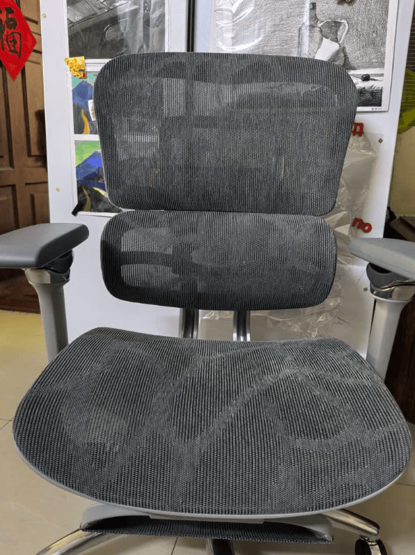 使用普通网布材质,透气性中等,长时间坐着可能会有些闷热。坐感软硬适中,支撑性符合日常办公需求。整体舒适度表现中规中矩。