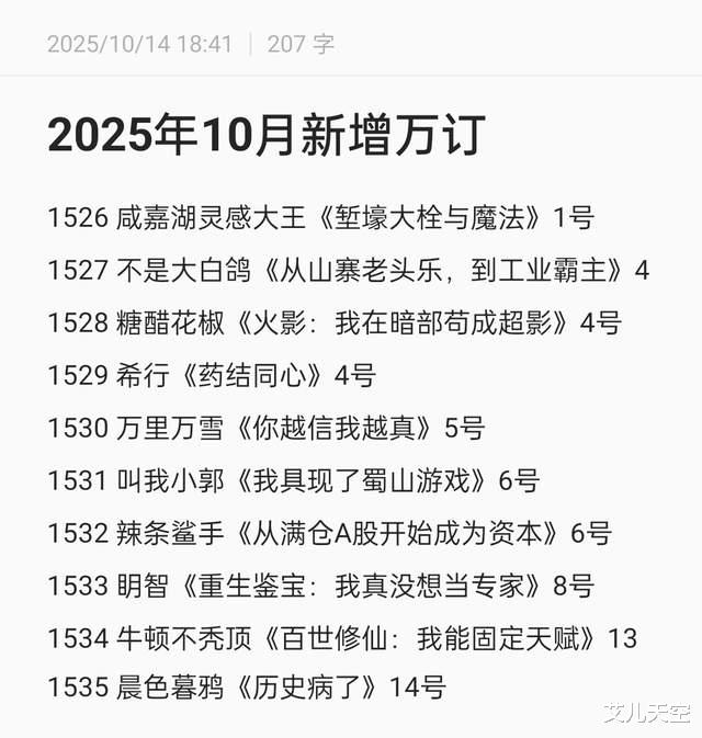 国庆中秋假期后起点万订小说的增速倒是放缓了。不过时隔几天总算又有新的万订小说出来了,简单跟大家看看。