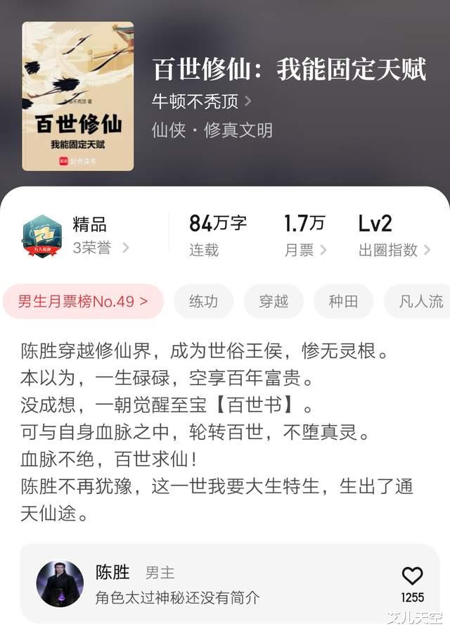 1、《百世修仙:我能固定天赋》84万字突破万订牛顿不秃顶作品,百世修仙长生文。