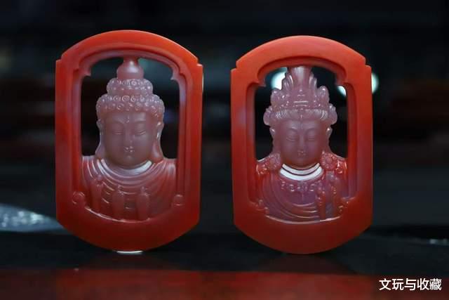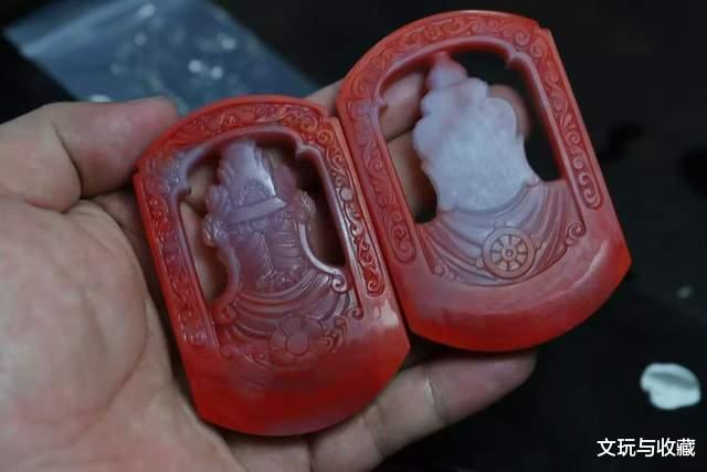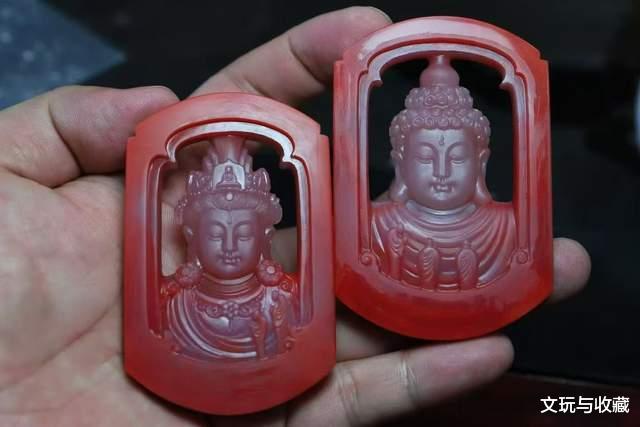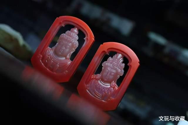 就像庙宇中的僧人并非披上袈裟就能顿悟佛法,艺术创作也需要经历岁月的淬炼与心灵的觉醒,唯有兼具丰富阅历与超凡灵性者,方能参透其中三昧。今日有幸呈现这对同料而制的柿子红包冻玉牌,采用传统镂空雕琢工艺,分别刻画佛祖与观音法相。