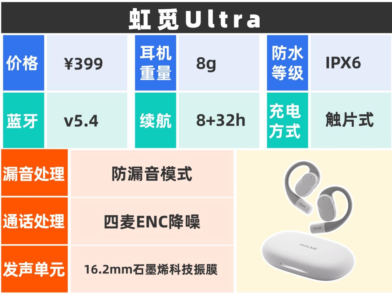 耳机亮点:防漏音模式+IPX6+触片式充电+续航8+32h+16*2mm石墨烯科技振膜+蓝牙5.4+虹觅声学调音+8g