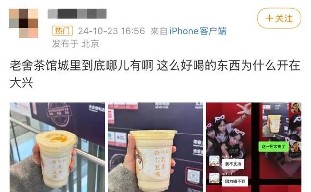 老舍茶馆的杏仁豆腐牛乳茶虽然热度略逊于前两个,但也绝对算是跟吴裕泰的抹茶冰激凌一样相当值得尝试的北京特色。