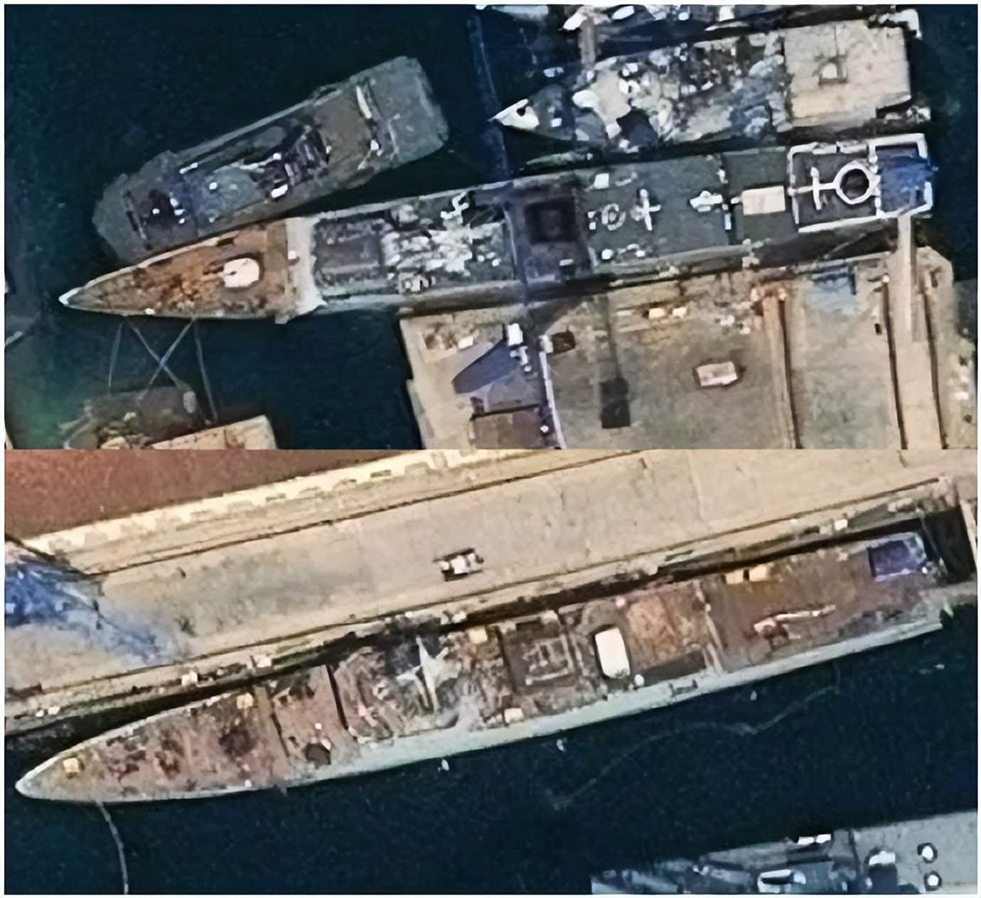 舰体方面,由于抬高一层甲板的B炮位,舰艏的S形更明显;舰尾部分并无拖曳声呐开口,和没有声呐的056也不同,通过大尺寸开口判断,该型外贸护的飞行甲板下方应可容纳一艘快艇。