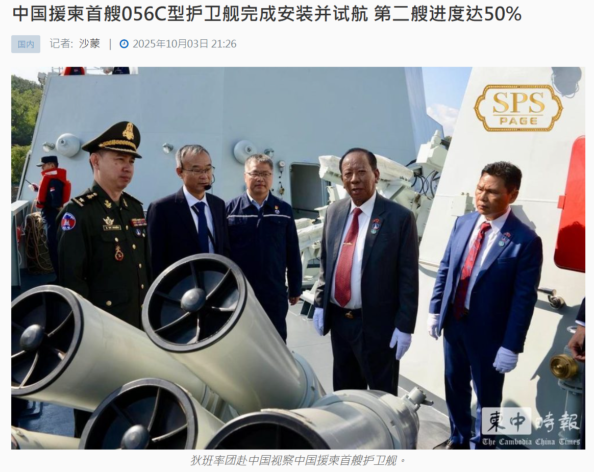 近期,柬埔寨当地媒体报道称,近日柬埔寨国王最高顾问、五星上将、狄班亲王,在社交媒体上透露,其9月下旬率团赴中国实地视察中国援建的两艘056C型护卫舰,一号舰已完成建造工作并开始海试,二号舰的建造工作也已完成约50%。