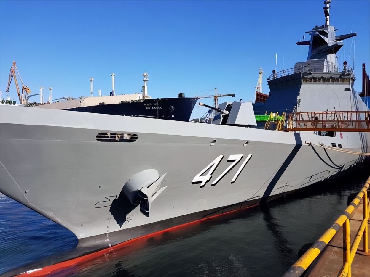 相关配图显示,被暂且称之为056C的(Cambodia)的中国援建柬埔寨护卫舰,就是几个月前下水的那款设置B炮位并搭载SR-2410C相控阵雷达的外贸型护卫舰。有一说一这款全新建造的外贸护确实要比056热舰移交更合适。毕竟对于柬埔寨而言,056的性能实在是太差了点。