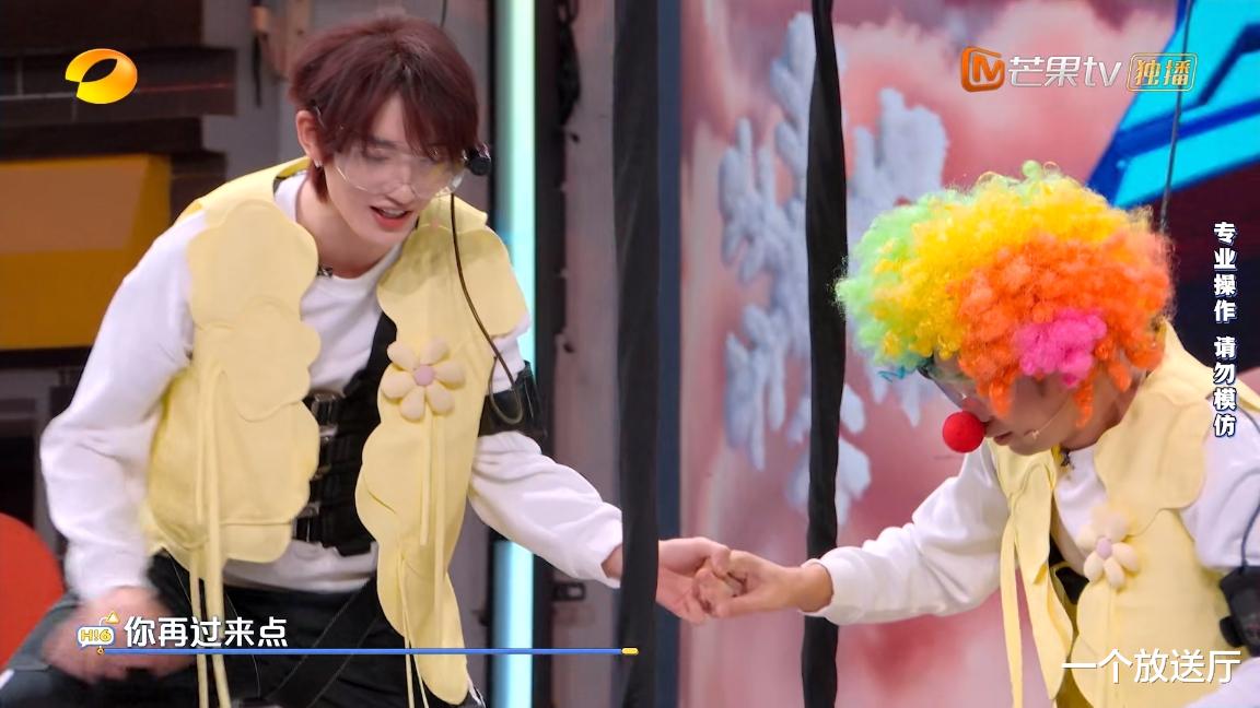 而另一边的丁程鑫一边喊“别怕别怕”一遍伸手,稳稳地接住杨迪。