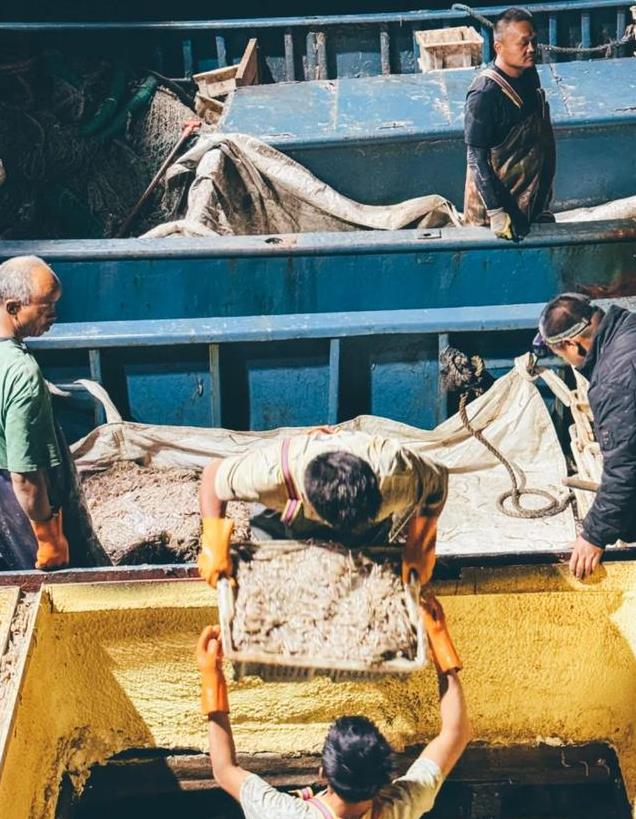 “龙王塘站就要到了”,而眼前的景象却让我想起了今年网络热播的台剧《八尺门的辩护人》——两侧的山包对峙,夹起一道窄窄的水门,水门内无数渔船进出来往;岸上一排排高层建筑,像极了片中的“滨海国宅”,也显示了当地渔民的富裕程度——这里不是宝岛基隆的八尺门,而是东北大连旅顺的龙王塘。为了看渔港卸渔和交易的情景,我选择在傍晚抵达。港区大门旁的顺港饭店,此时如同阿庆嫂的春来茶馆一般。“小鲅鱼合四块一斤,还要我跟车?那得五块。不是哥,我很实在啊,您看,一车撑死能装二百盘(注:二十斤为一盘),到呼伦贝尔一个来回我就是驴也得歇一天不是……”听完操着各种口音的交易商攀谈过行情,胜过去水产学院上节课。