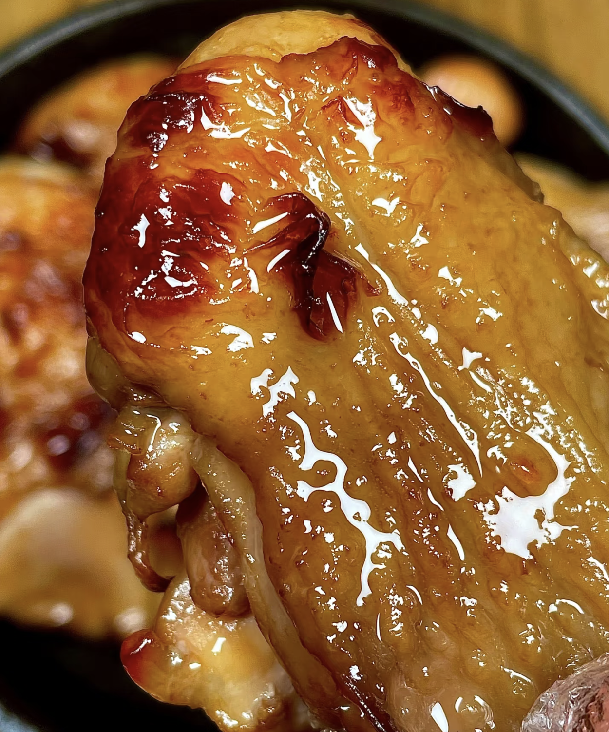10分钟后,将鸡腿肉翻面,再烤10分钟。翻面可以让鸡腿肉两面都能均匀受热,烤出更加完美的色泽和口感。经过20分钟的烤制,鸡腿肉已经完全熟透,表面呈现出诱人的金黄色,散发出阵阵香气。