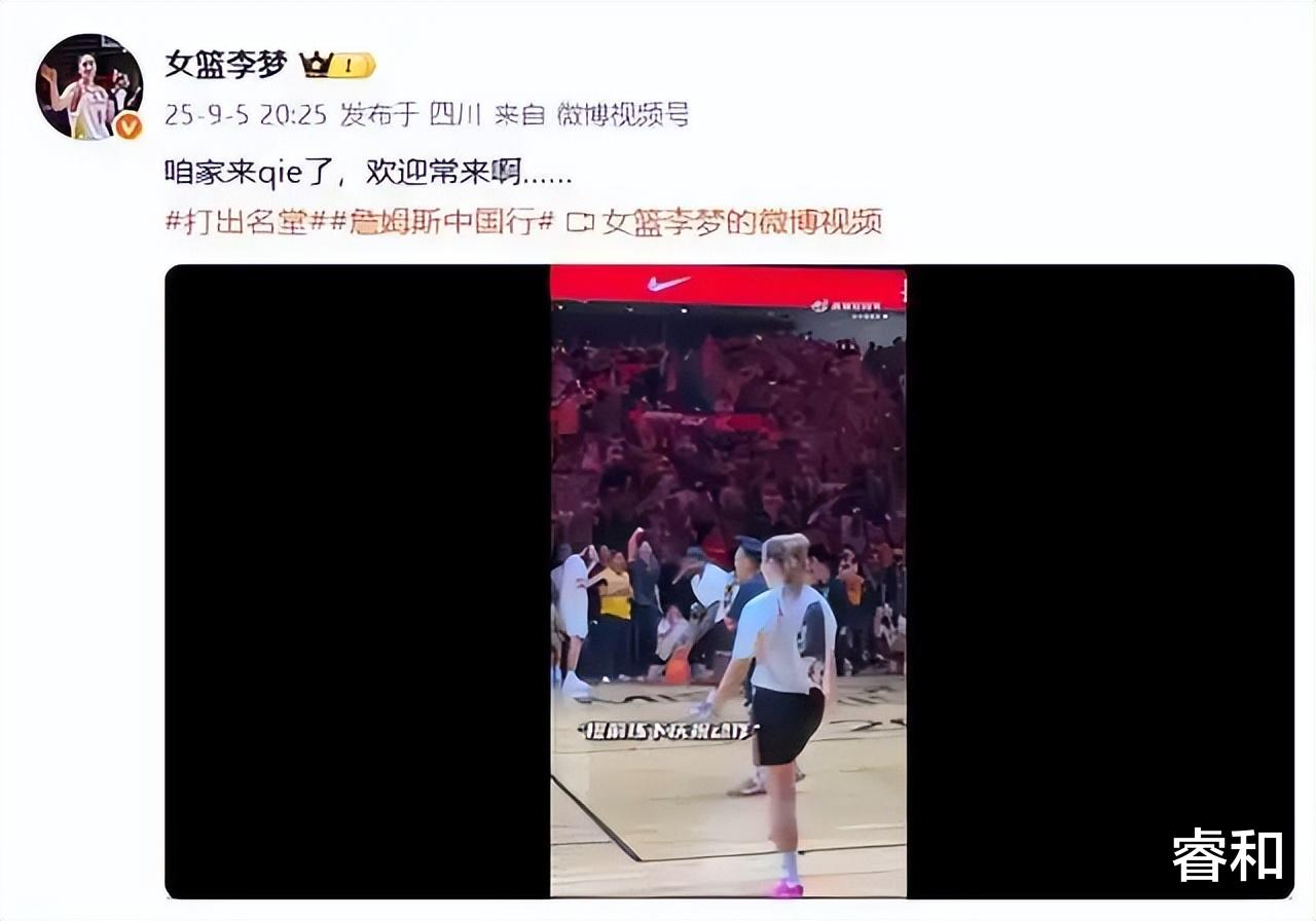 活动结束后,很久没有更新社交动态的李梦发布了新内容,她难掩兴奋地写道:“咱家来qie了,欢迎常来……”一句亲切的方言,透露出她作为“东道主”的喜悦。更让她激动的是,这一次,她不再只是隔着屏幕仰望偶像,而是以嘉宾身份受邀来到现场,与詹姆斯实现了多年未竟的面对面互动。
