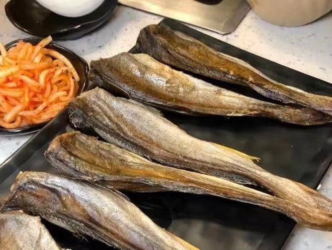 第二,青岛当地叫它大头腥,新鲜的身上带走花纹,活鱼放血后特别明显,以前钓过28斤的,刺身,沸腾,水煮鱼,剁椒鱼头都是极品食材,学名好像叫亚洲紅鳕。除此之外,明太鱼是海鱼中的极品,味道非常鲜美可没你说的有土腥味,你说没什么市场你也错了。延边州就把大部分消化掉了,外边想买也不好买,就是买到了也是最不好的那种鱼。东北人会做烤明太鱼,麻辣明太鱼,明太鱼炖豆腐,拌明太鱼丝明太鱼没有其它鱼腥,脂肪少不适合炖食。但朝鲜族做的干拌鱼丝和腌明太鱼确实非常好吃,适合下酒。