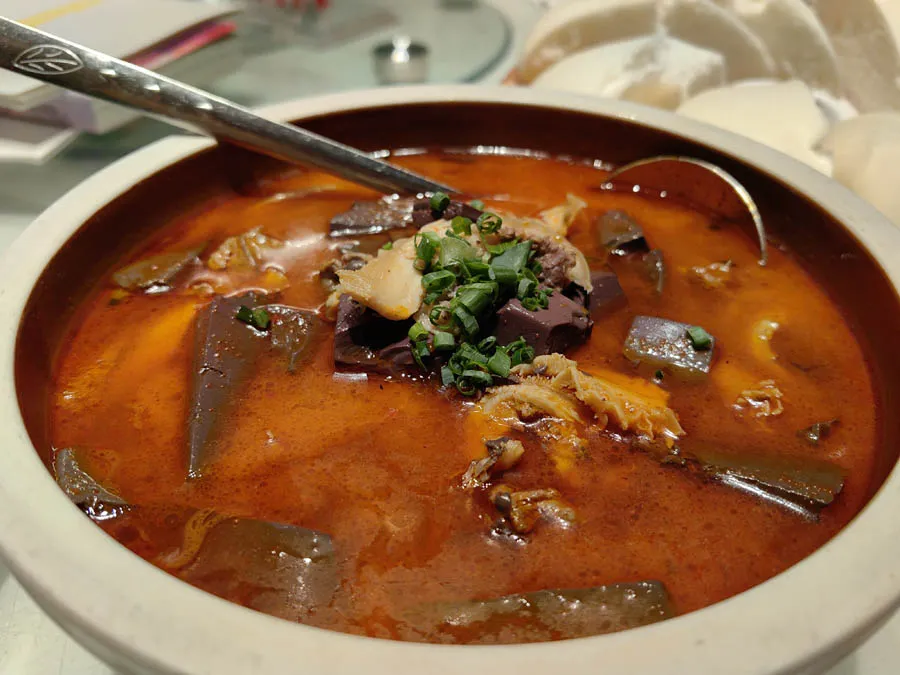三合汤,这道入选2008年北京奥运会食谱的佳肴,以牛肉、牛肚、牛血为主料,搭配鲜红的辣椒、翠绿的香菜,汤汁浓郁,辣而不燥,鲜香味美,是祛风除湿佳品,深藏梅山菜的神秘。