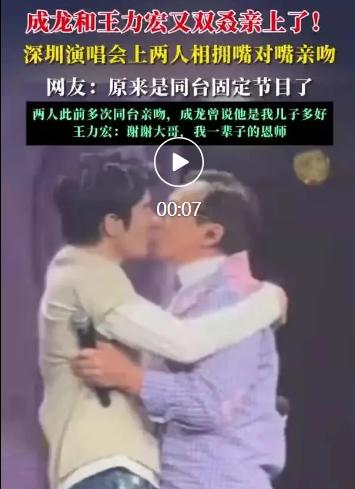 网友表示,两人此前多次同台亲吻,成龙曾说他是我儿子多好,王力宏:谢谢大哥,我一辈子的恩师。据了解,类似场景早在2018年上海演唱会已发生。