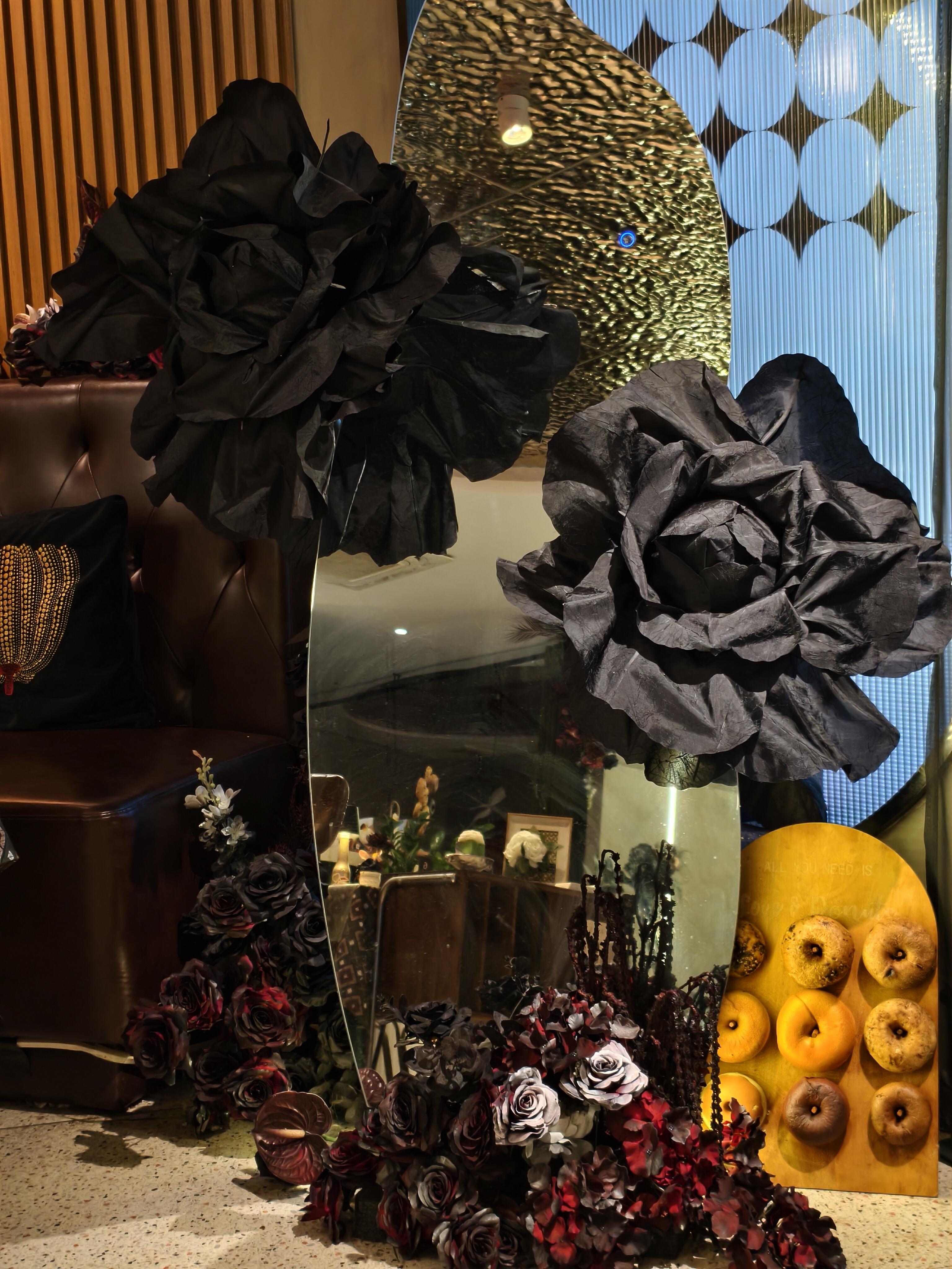 2. 门口整面黑色玫瑰墙是暗黑风打卡圣地