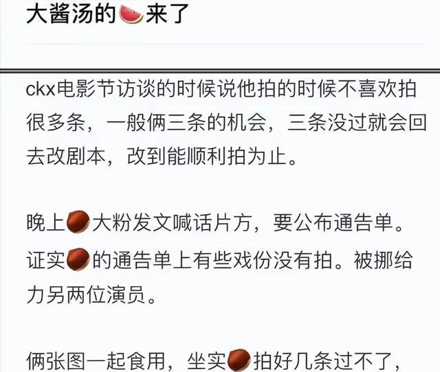 之后就有粉丝爆料,看了通告单,很多剧情都没有拍。