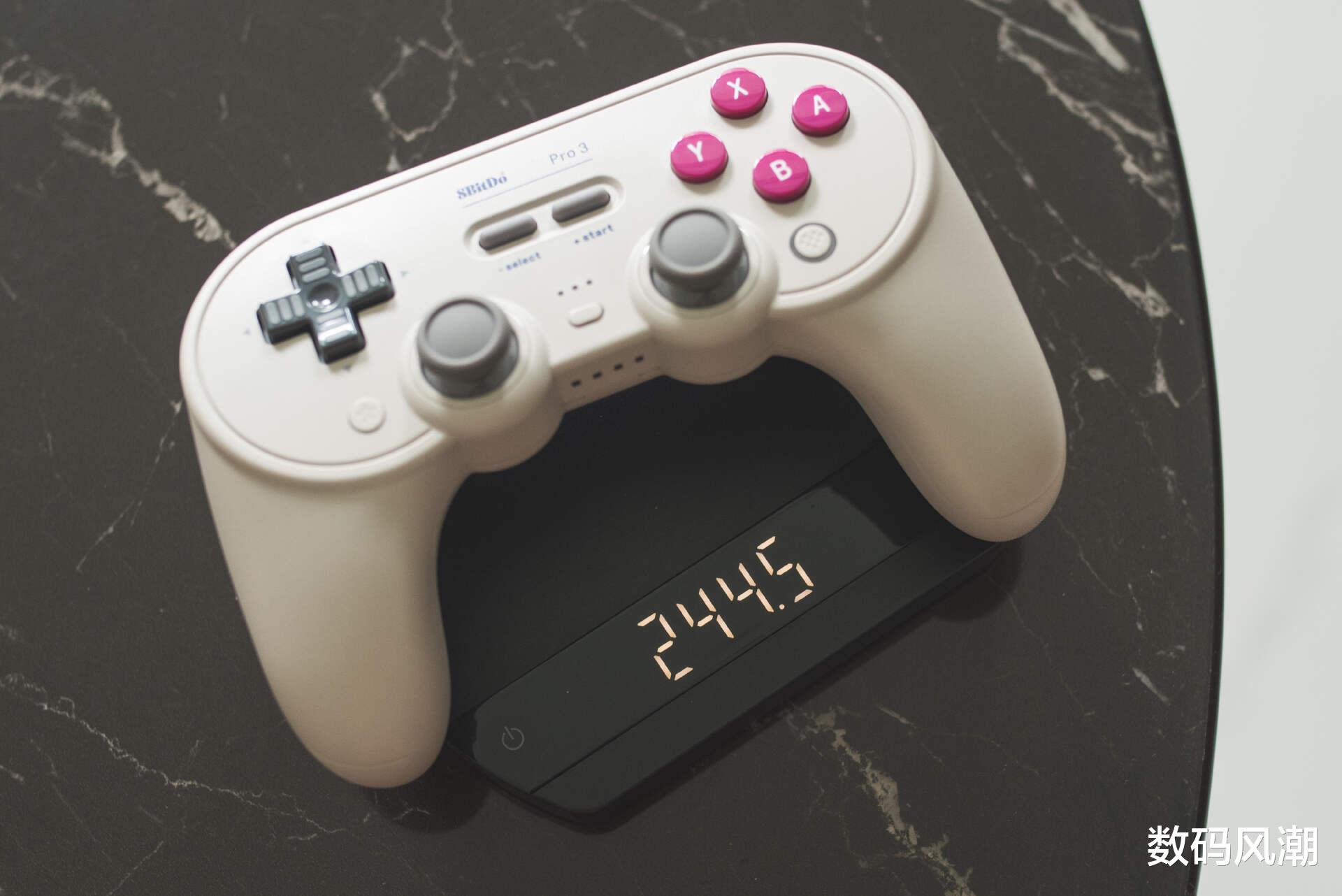 我没有把玩过Pro 2,所以对于Pro 3的第一印象是基于原厂手柄的主观评价。Pro 3上手比想象中更小巧、更精致。总体重量适中,约为244克,所以握在手里有一定分量感但又不至于会觉得疲惫,长时间游戏也很友好。