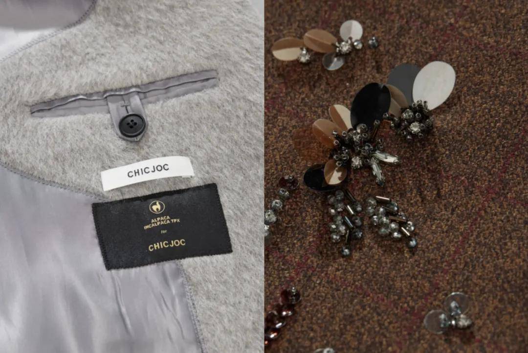 了解CHICJOC的人,都会发现其在面料的追求上不遗余力。在商品详情页里,可以读到“意大利空运簇状BABY骆马”“意大利进口山羊毛“西班牙进口拉贡”等对面料详细的介绍字样。