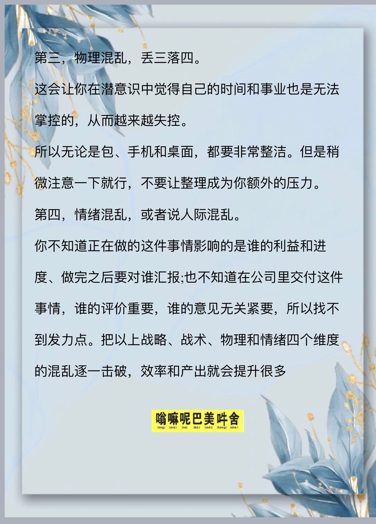 这会让你在潜意识中觉得自己的时间和事业也是无法掌控的,从而越来越失控。