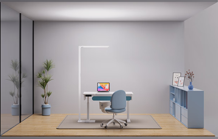 上发光面发出的光,经过天花板和墙壁一折射,就能均匀地散布在整个屋里,把空间光补得足足的。以前那种情况,桌面亮得晃眼,四周却黑黢黢的,现在可不会啦,能大大减轻用眼疲劳的累积,对孩子很友好。