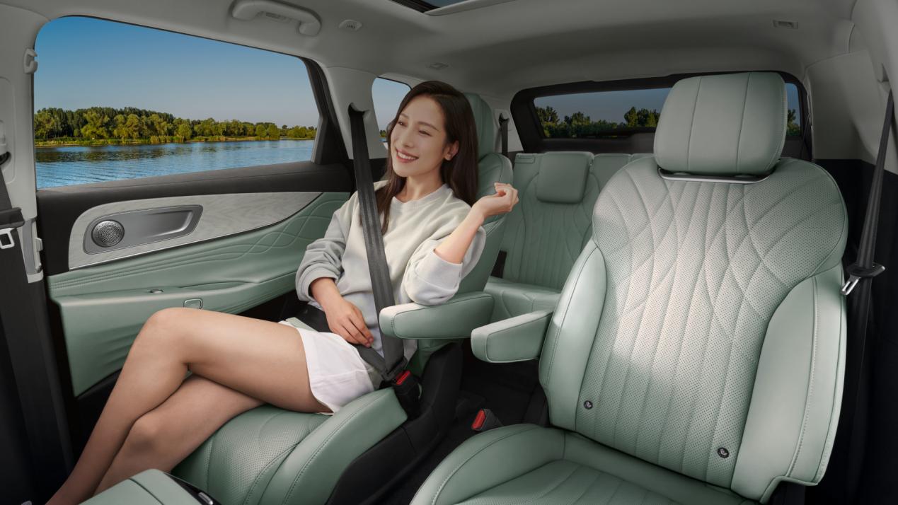 夕阳西下,你载着家人踏上归途。大六座布局让每位乘客都能享受到C位礼遇,二排独立座椅搭配独立新风系统与B柱出风口,即便是长途旅行也能保持空气清新与舒适。女王副驾专属腿托更是让家中的“女王”大人倍感尊贵。车内,AQS空气质量管理系统与CN95级滤芯默默工作,确保呼吸的每一口空气都纯净如初。