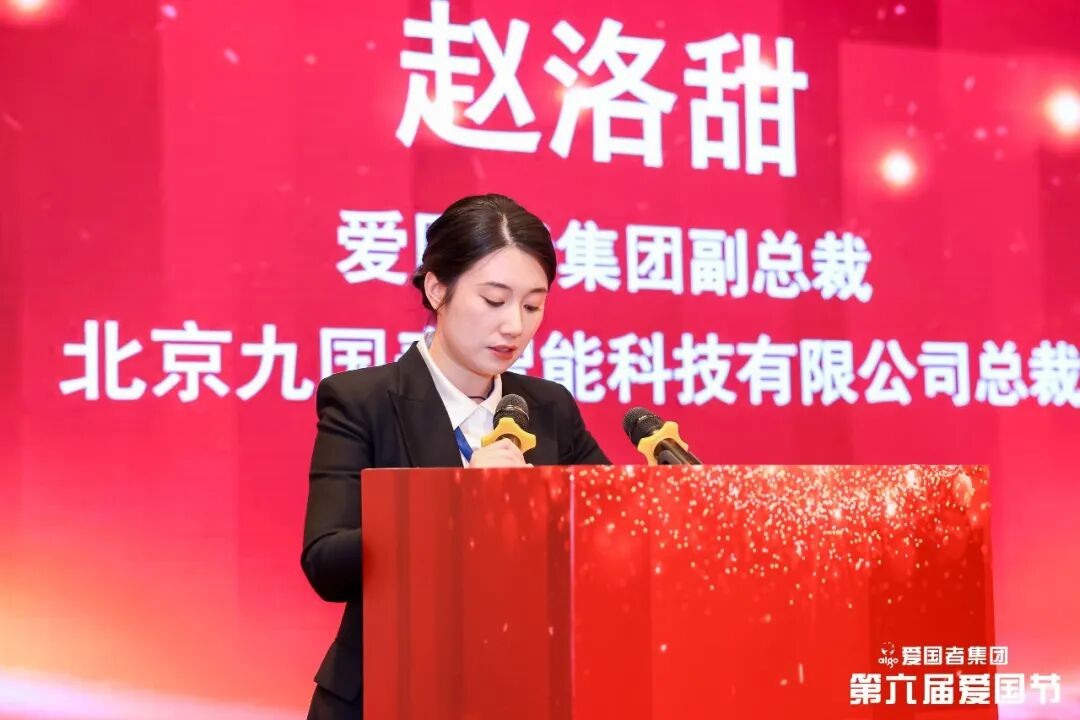 第六届爱国节组委会主席、爱国者集团副总裁、北京九国春智能科技有限公司总裁赵洛甜发表致辞,她阐述了企业在新时代背景下,将爱国情怀融入经营发展、科技创新、社会责任等各方面的实践路径,号召全体同仁以实干践行使命。