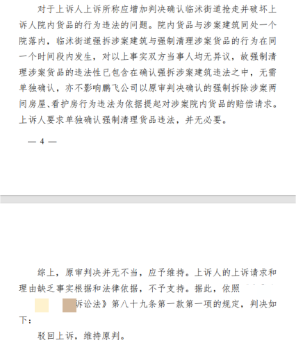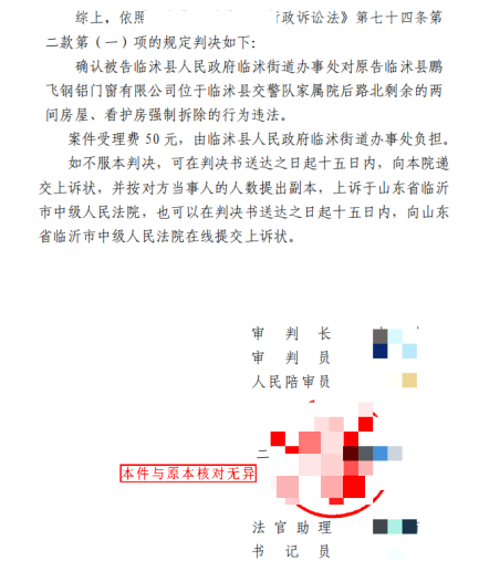值得关注的是,对于 2024 年 11 月的货物转移及剩余建筑拆除行为,临沭街道办在法庭上辩称,该行为是开发商对其竞得土地的管理活动,与街道办无关。但法院经审理查明,相关强拆行为确系临沭街道办组织实施,并据此作出了相应判决。