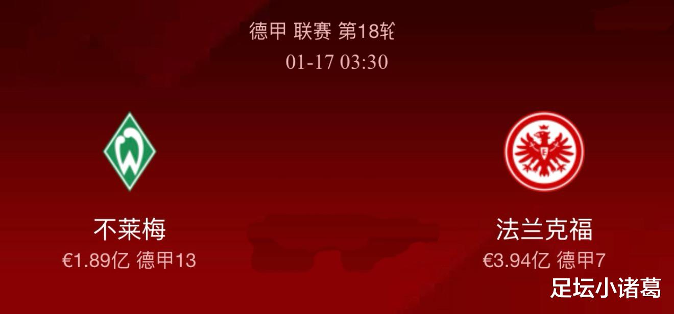 本赛季17轮德甲联赛过后,法兰克福以7胜5平5负的战绩排在德甲积分榜第7位,目前在多赛一轮的情况下仅落后欧战区3分,具备很大的潜力冲击欧战资格;球队本赛季进攻端的表现值得称赞,场均2.06球的进攻火力可以排在联赛第4位,不过不太稳固的后防线严重拖了球队的后腿,场均丢球2.12球,是德甲联赛丢球第三多的球队。主客场方面,球队虽然在客场的场均丢球数比主场多,但进攻端表现却比主场出色。需要注意的是法兰克福的近期状态也只比不莱梅好一点点,近6场比赛1胜3平2负,具有含金量的一场比赛是逼平强敌莱比锡红牛。