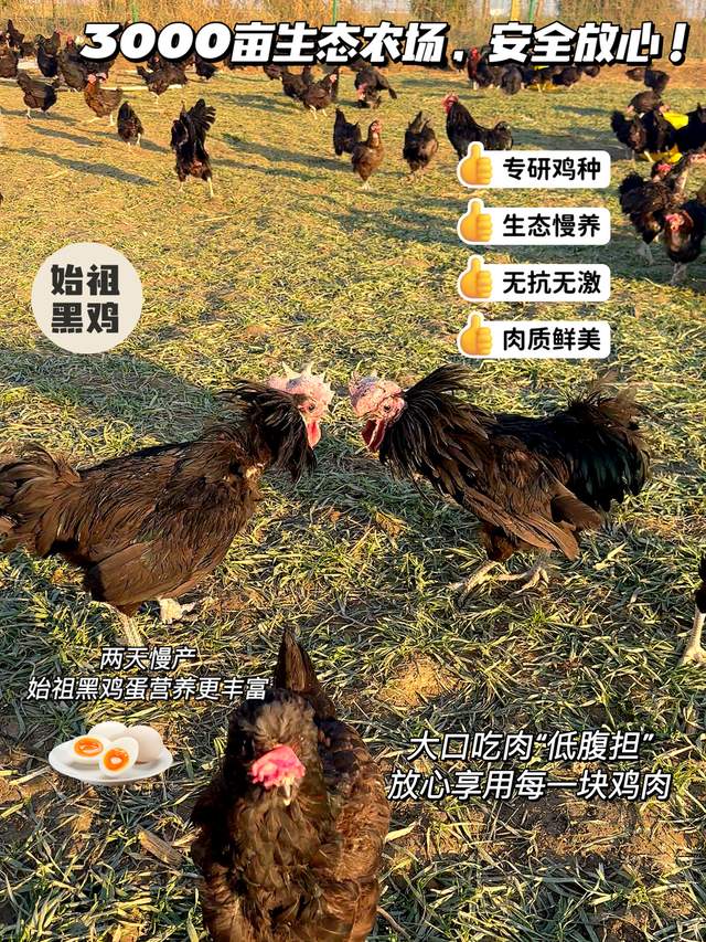 与市场上追求产量的“快产蛋”不同,始祖黑鸡坚持自然慢产模式,这是其营养优势的关键所在。