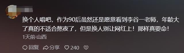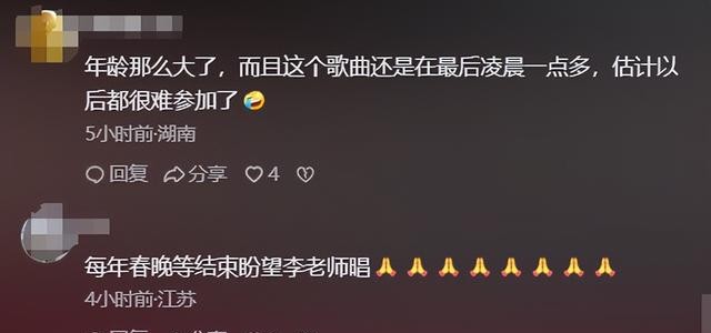 “习惯了李谷一老师的歌声,少了她的声音好像不圆满,祝李老师身体健康。”