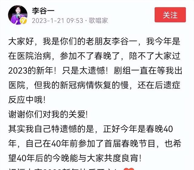 遗憾的是,春晚的常客、资深艺术家李谷一老师,今年将无法再登春晚舞台。