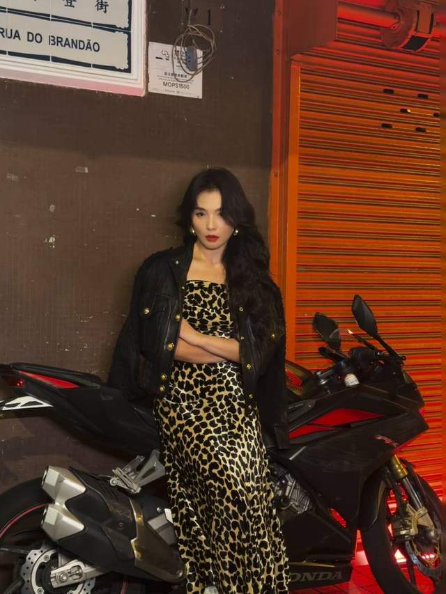 这次的豹纹加上短皮衣,一头波浪卷发型,简直是成熟知性女人的代表,风格多变的她这次也收获很多称赞。