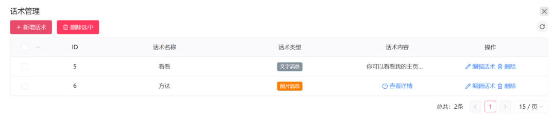 3-3.话术库的设计,可以快速发送高频使用的话术,提升沟通的效率。